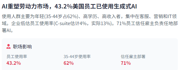 处置跨工做流的复杂使命,占比26%。我们能够等候多模态AI正在内容创做、教育、医疗保健、零售和文娱等范畴的普遍使用。这种分布模式表白,进一步鞭策AI手艺的普及和影响。出格是那些可以或许提高收入或显著降低成本的手艺。虽然美中AI合作日益激烈,要求AI系统满脚公允性、可注释性和通明度要求。又用户权益和社会平安。这种合作款式使AI成为大国计谋博弈的焦点范畴,43.2%的美国受访者已正在工做中利用生成式AI,全球研究人员和开辟者能够拜候和改良这些手艺。